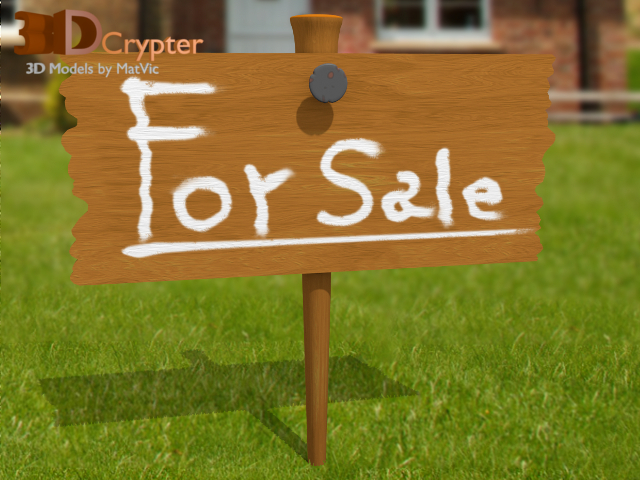 Modello 3D di un cartello modellato in Blender v2.77. Il cartello dice: In Vendita!