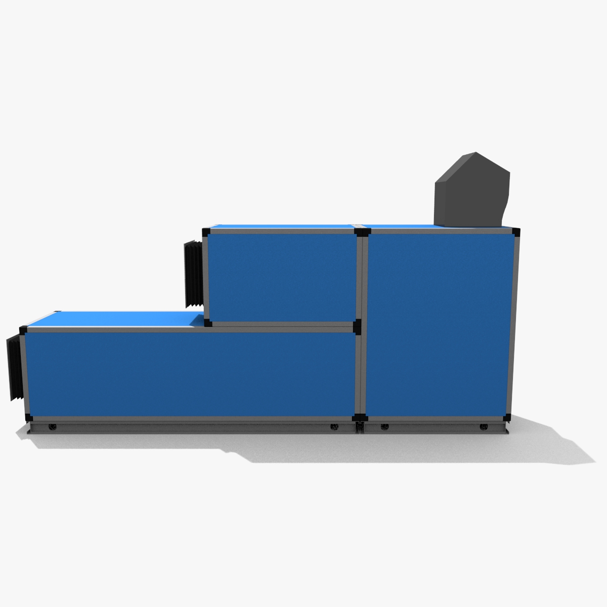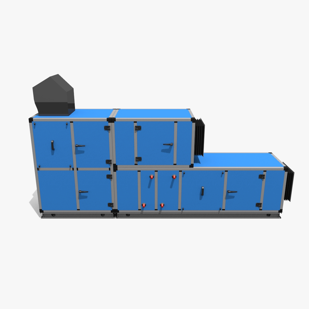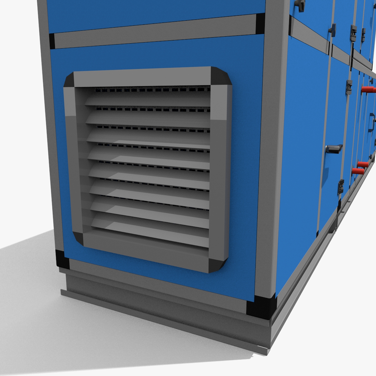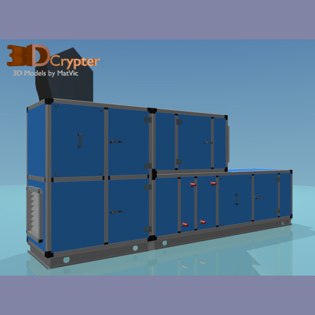 Detailed 3D model of a AHU (Air Handling Unit) modelled in Blender v2.67b. The model is completed of materials.